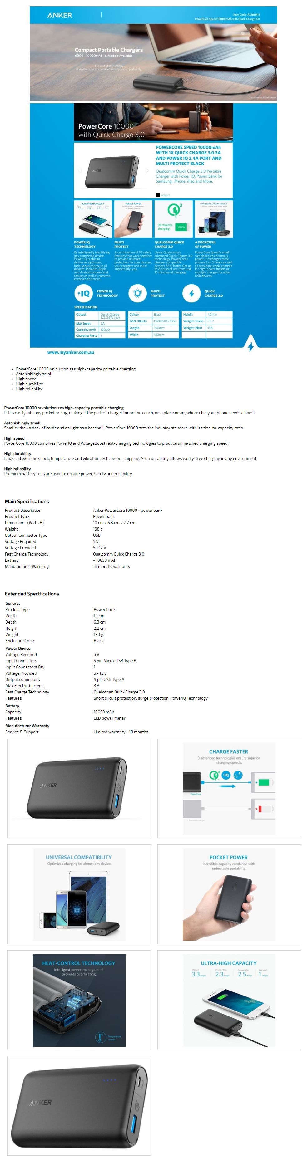 Product Name Anker A1266h11 Powercore Speed 10,000mah Portable Usb Powerbank Black