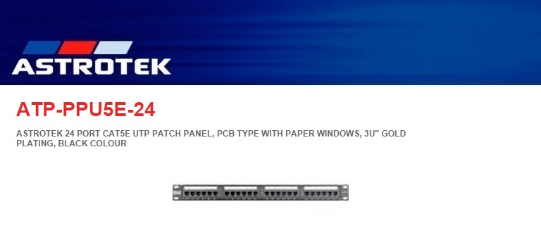 Product Name | Astrotek 24 Port CAT5E UTP Patch Panel ATP-PPU5E-24 |