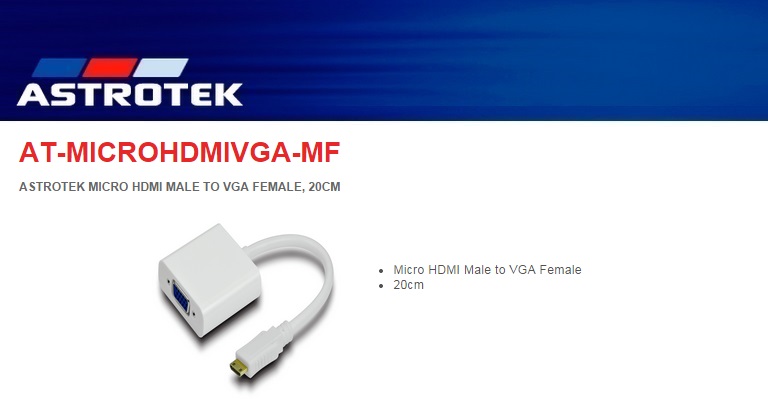 Product Name Astrotek Micro HDMI Male to VGA Female 20cm - AT-MICROHDMIVGA-MF