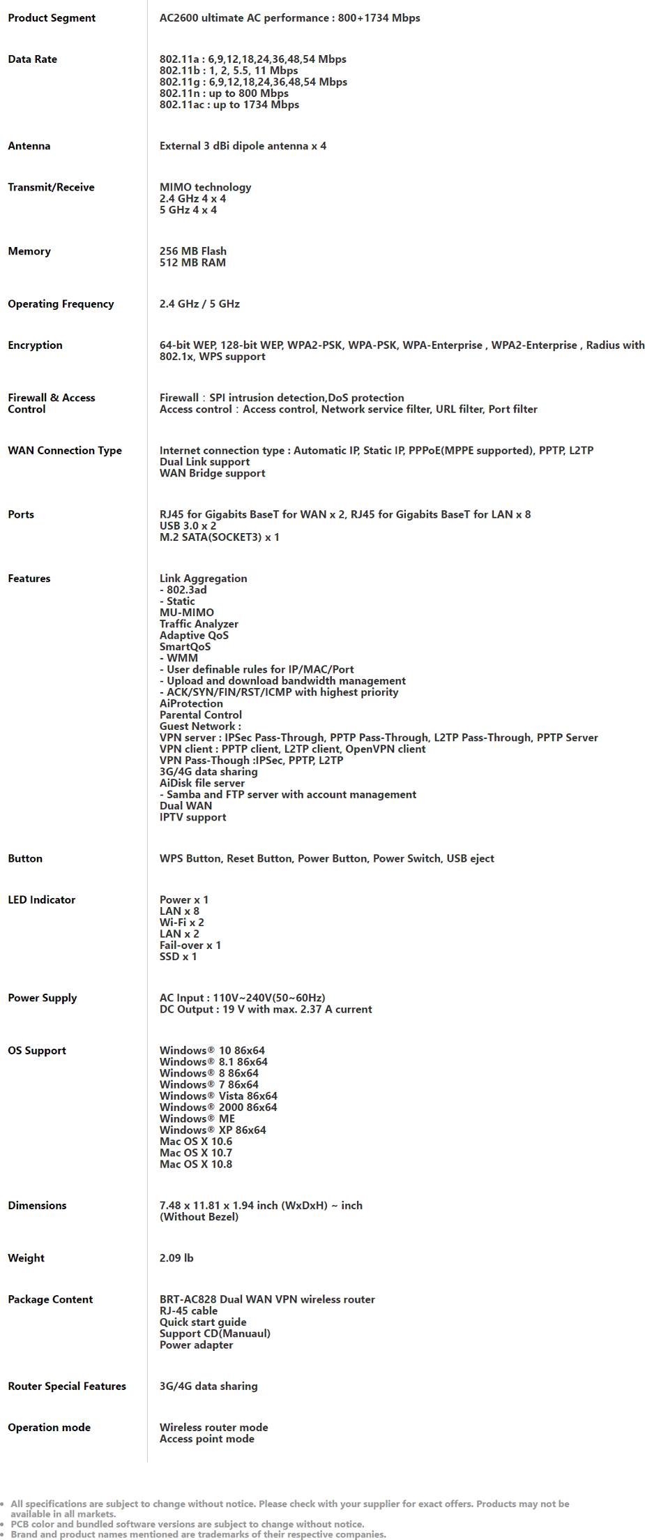 Description ASUS BRT-AC828 AC2600 Dual-Band Wireless Gigabit MU-MIMO Business Router