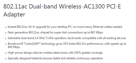 Product Name | ASUS PCE-AC56 802.11ac Dual-band Wireless-AC1300 PCI-E Adapter |