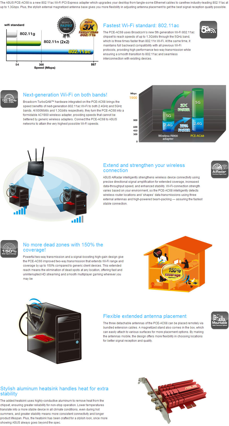 Description Asus PCE-AC68 AC1900 Dual-Band Wireless PCI-Express Adaptor