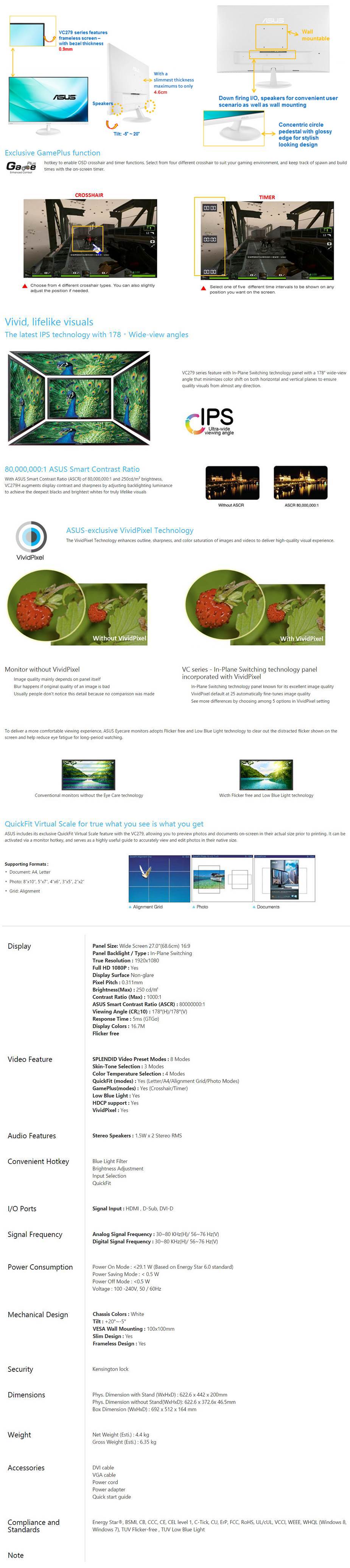 Product Name | ASUS VC279H-W 27" Full HD IPS LED Monitor - White |