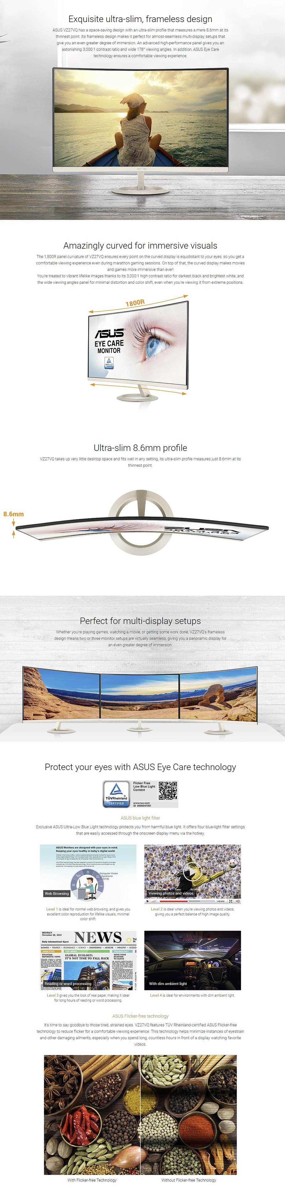 Description ASUS VZ27VQ 27" FHD Curved LCD Monitor Display