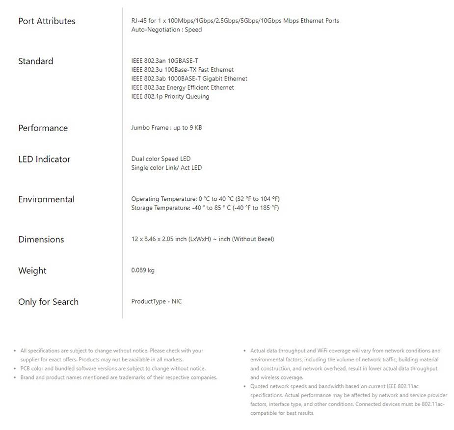 Product Name | ASUS XG-C100C 10Gbps Base-T PCI Express Network Adapter |