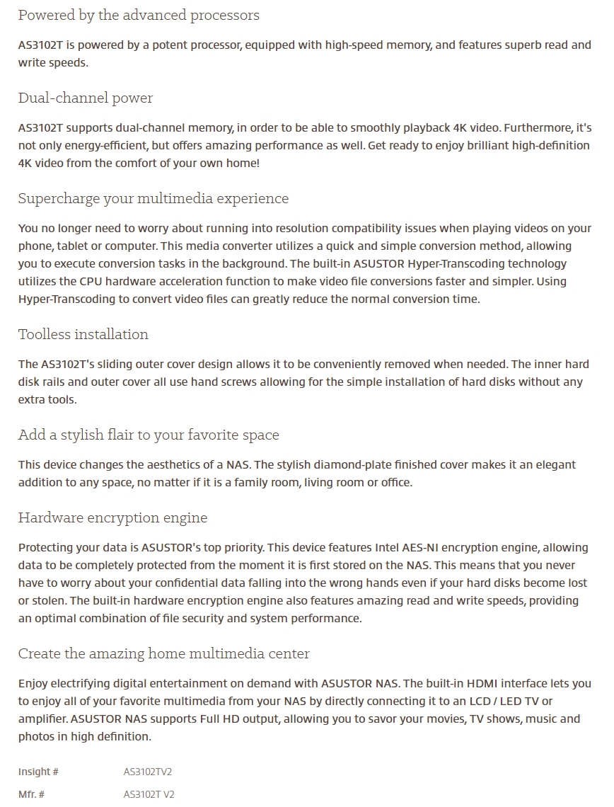 Product Name | Asustor As3102t-v2 2-bay 2GB Diskless Desktop NAS |