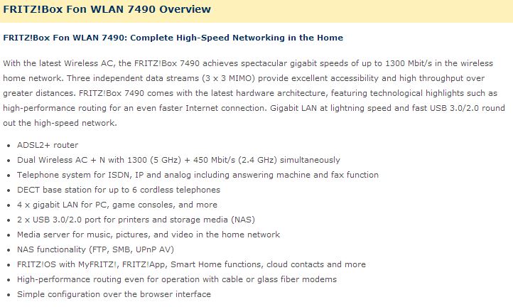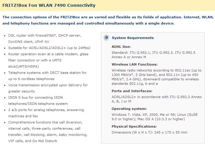 Product Name | AVM FRITZ!Box AVM7490 Dual-Band Wireless AC ADSL2+/VDSL2 Modem Router with ISDN |