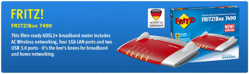 The 7490 gets your home network running at top speed, regardless of whether you have an ADSL or VDSL connection. Thanks to cutting-edge hardware, Wireless AC, gigabit LAN, and USB 3.0, you can enjoy lightning-fast connectivity and make progress bars a thing of the past.
