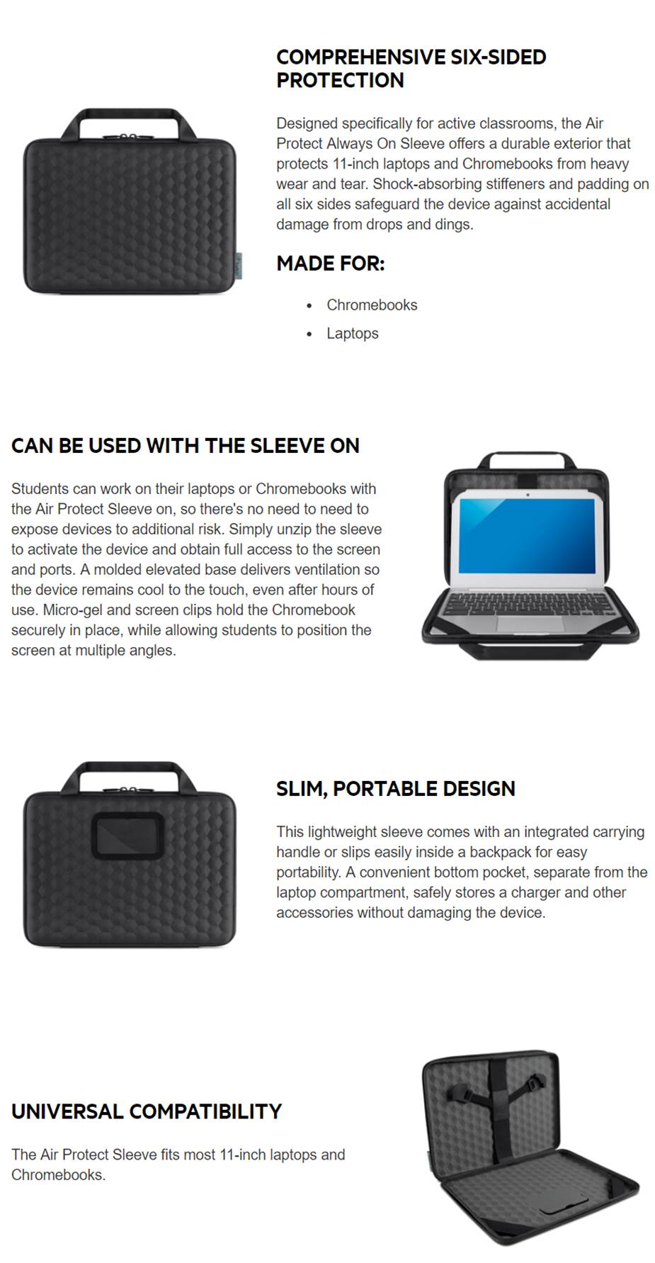 AIR PROTECT BUBBLE SLEEVE FOR CHROMEBOOKS/NOTEBOOKS & LAPTOPS 11 INCH - DARK GREY