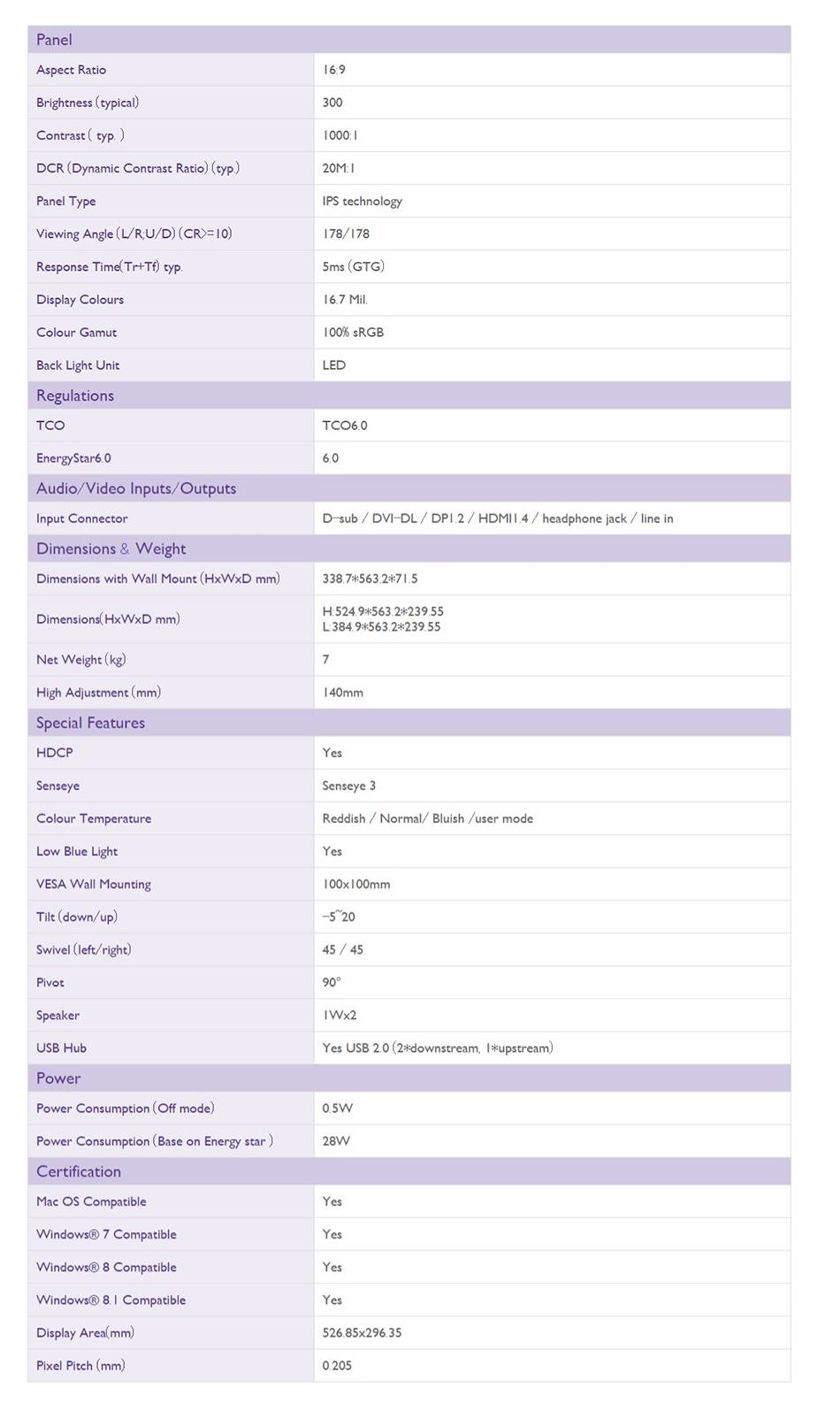 Brightness | 300 cd/m2 |