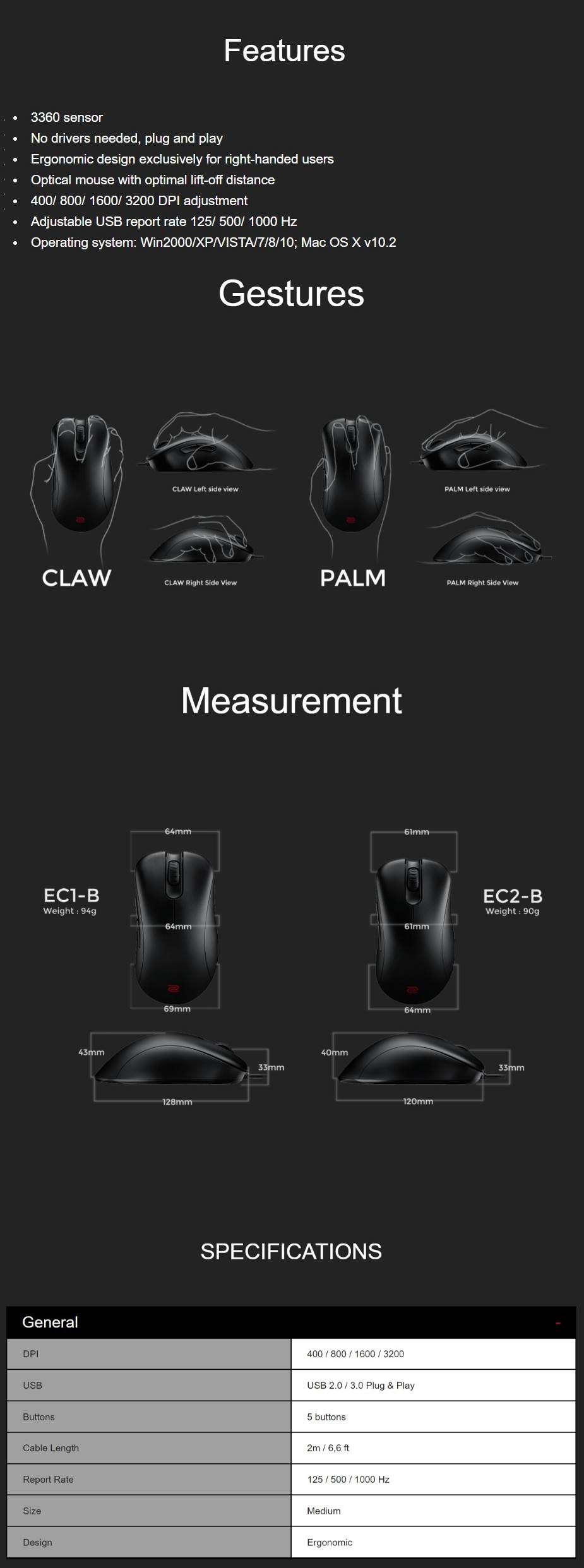 Description Benq Ec2-b Zowie Ec2-b Gaming Mouse