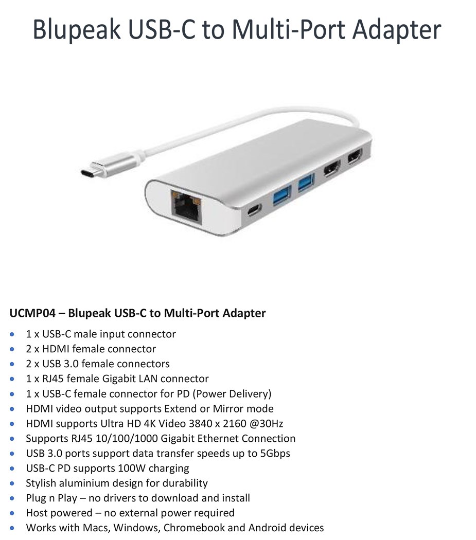 Product Name | Blupeak Usb-c To Multi-port Adapter UCMP04 | |||||