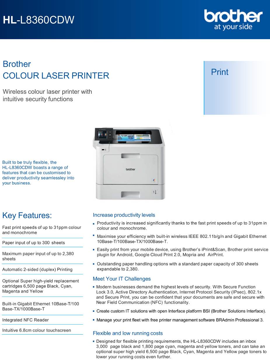 Product Name | Brother HL-L8360CDW Colour Wireless Laser Printer |