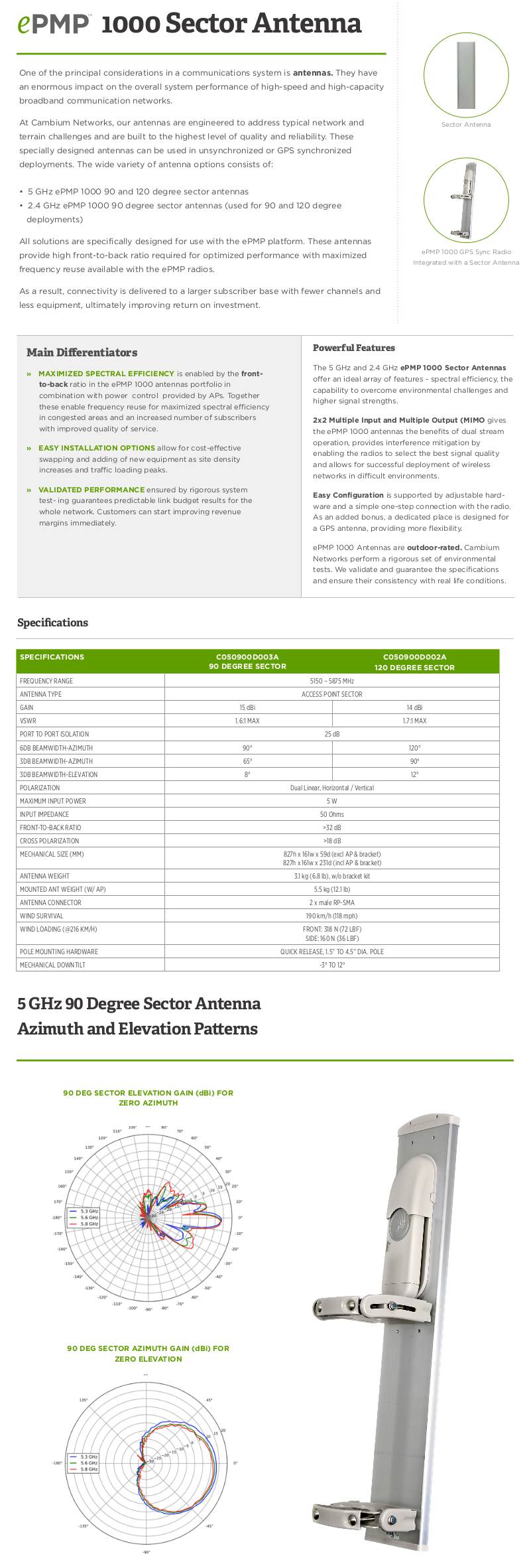 Product Name | Cambium Networks ePMP 1000 5GHz 90Degree Sector Antenna - C050900D003A |