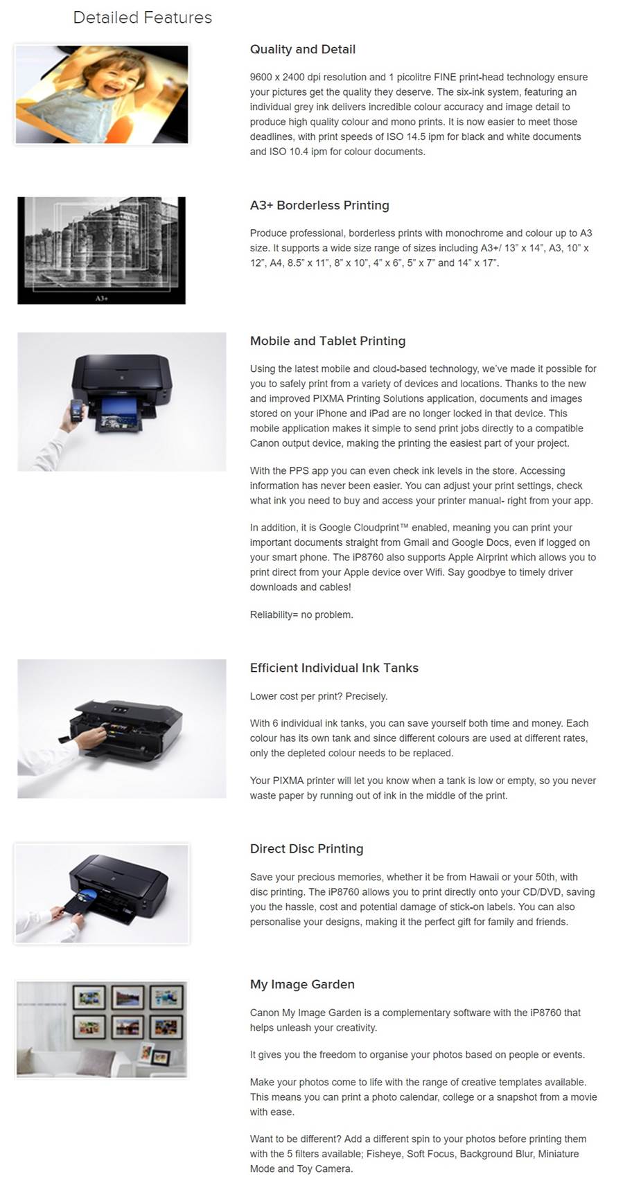 Product Name | Canon PIXMA iP8760 Wireless A3+ Colour Inkjet Photo Printer |