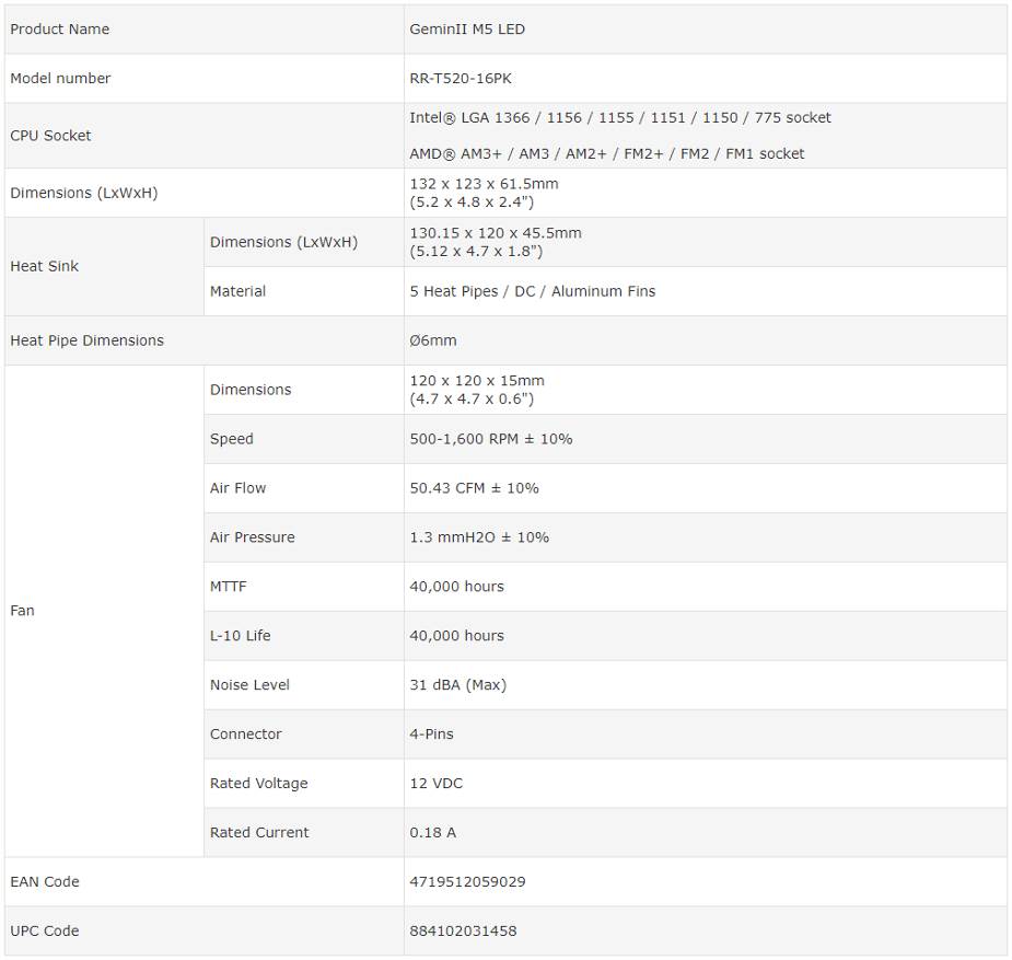 Product Name | Cooler Master GeminII M5 LED Low-Profile CPU Air Cooler |