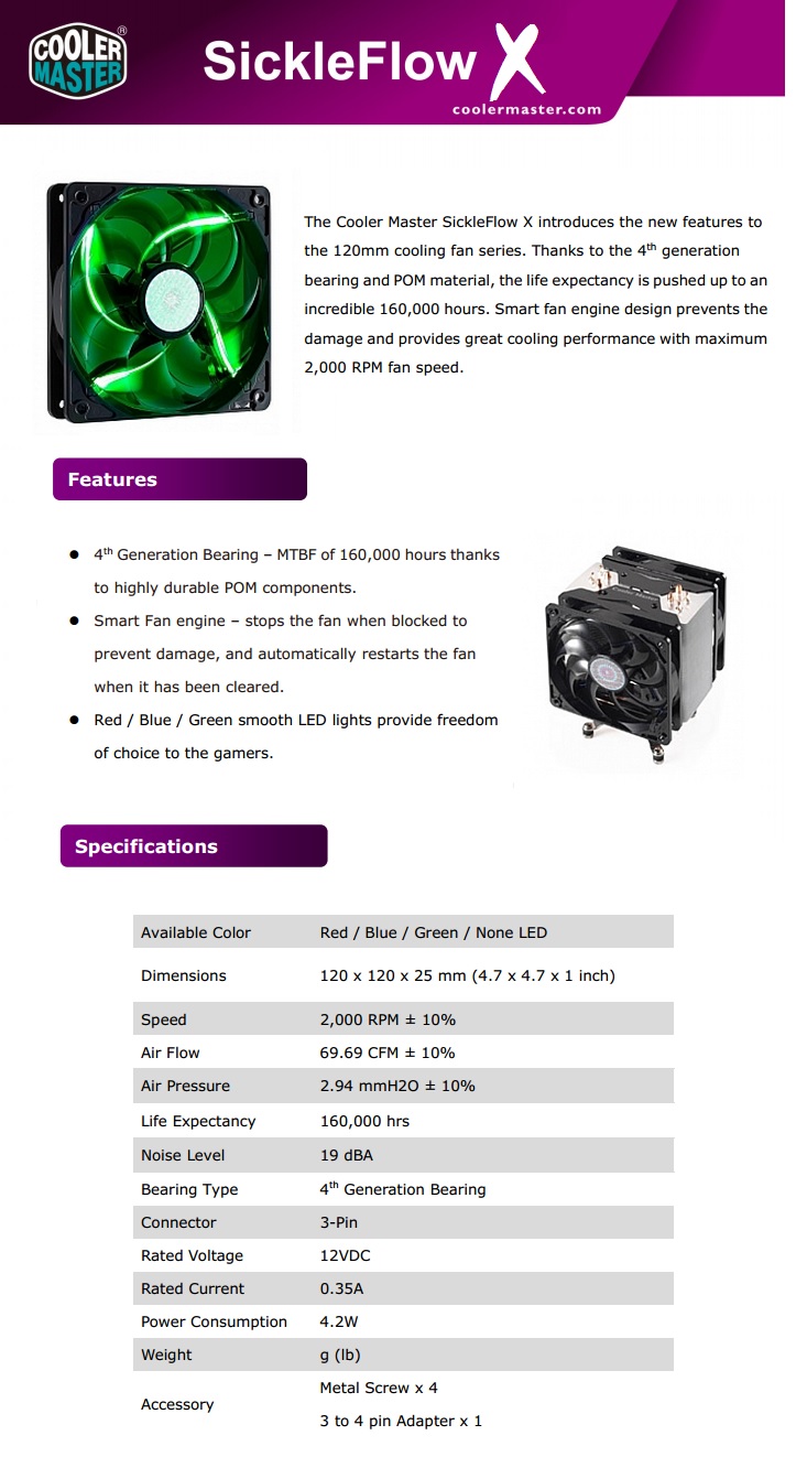 Description CoolerMaster SickleFlow X 120mm Case Fan-Green LED