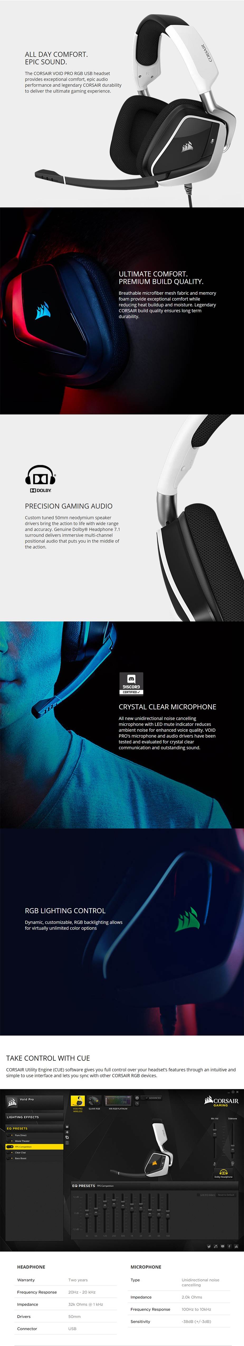 Product Name | Corsair Gaming Void Pro RGB Headset - White CA-9011155-AP |