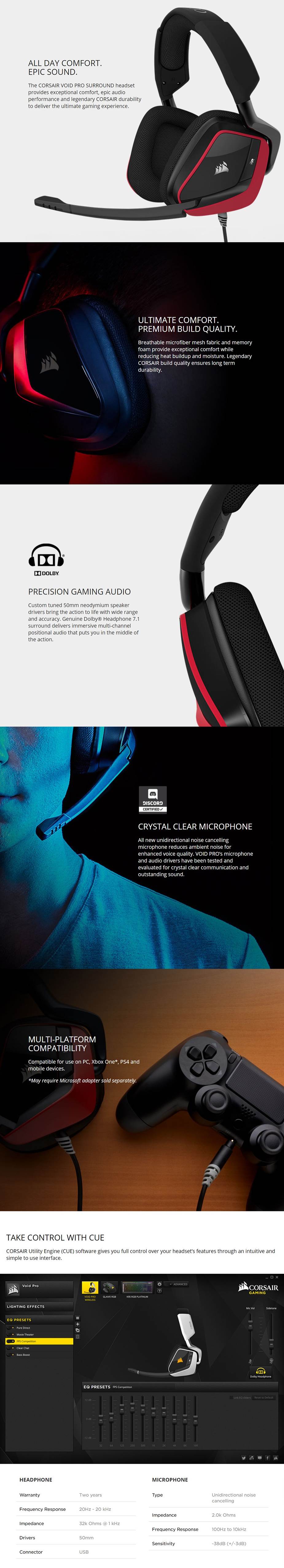 Product Name | Corsair Gaming Void Pro Surround Headset - Cherry CA-9011157-AP |