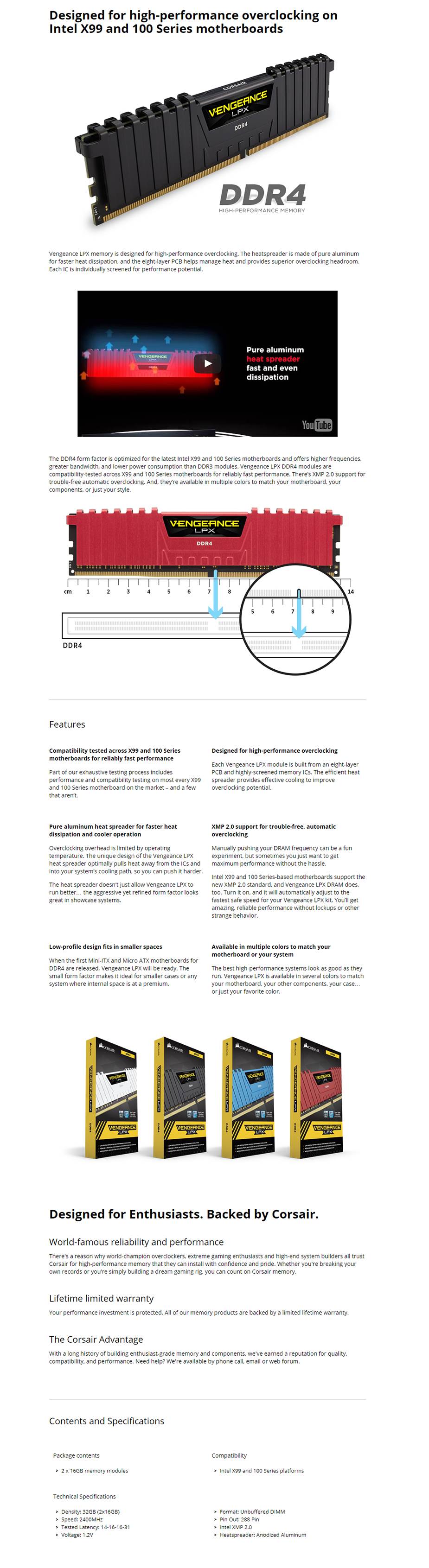 Corsair Vengeance Lpx 32gb (2x16gb) Ddr4 Dram Dimm 2400mhz Unbuffered 14-16-16-31 Black Heat Spreader 1.20v Xmp 2.0