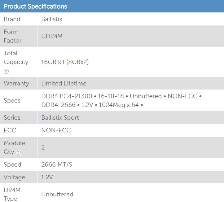 Product Name | Crucial Micron Ballistix Sport Lt 16gb (2x8gb) Ddr4 Udimm 2666mhz C16 Gaming Memory For Desktop Pc Grey Color |