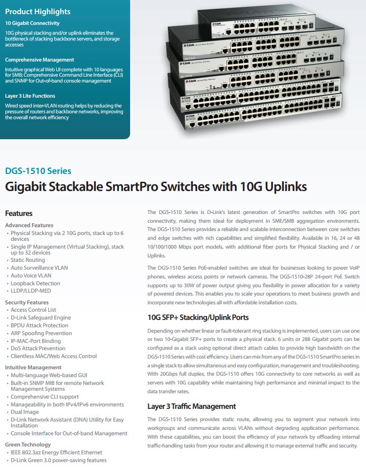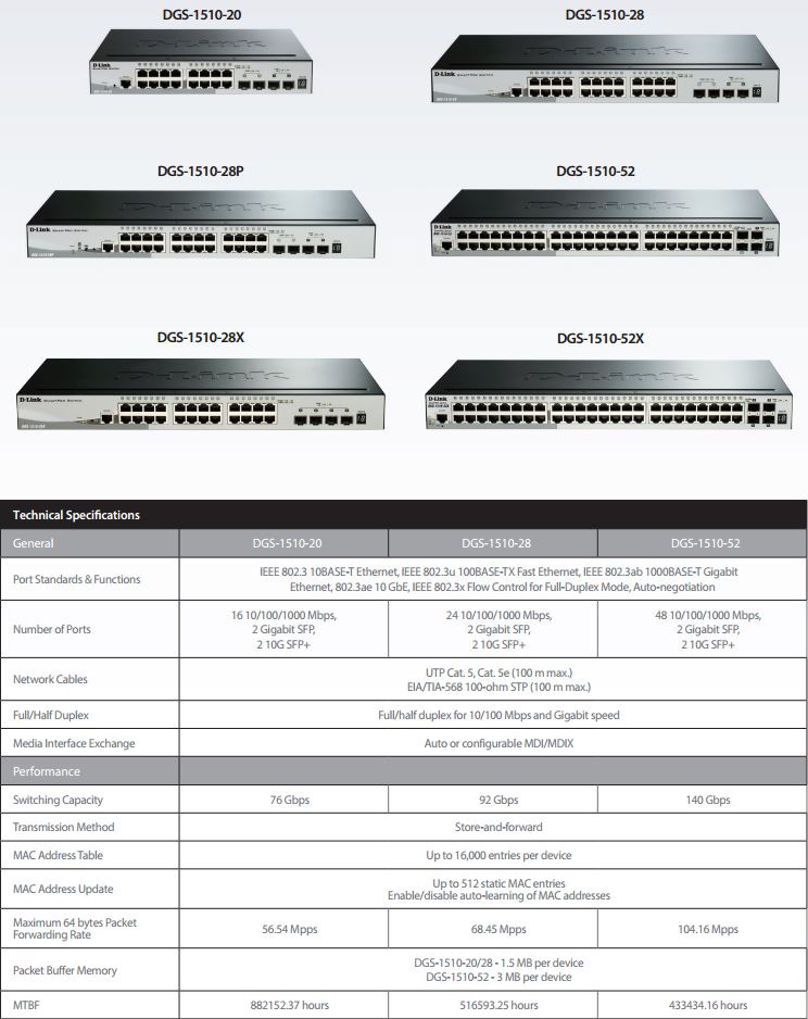 Product Name | D-Link 28-Port Gigabit SmartPro PoE Switch - DGS-1510-28X |