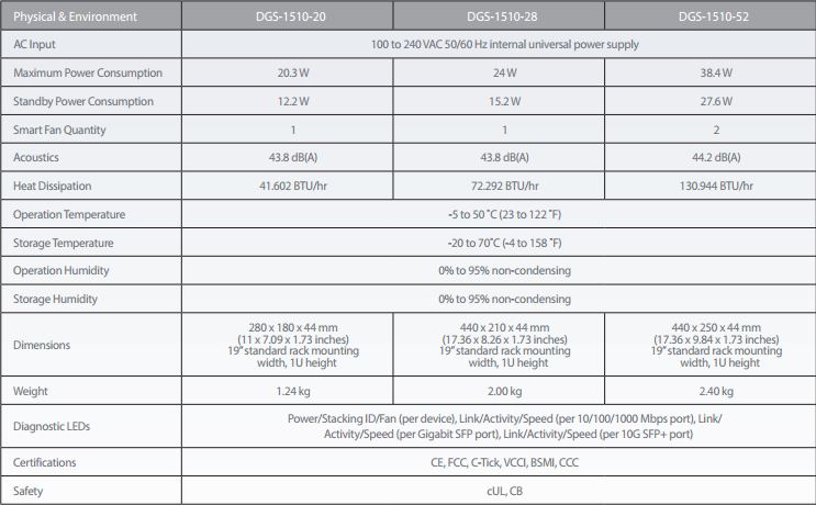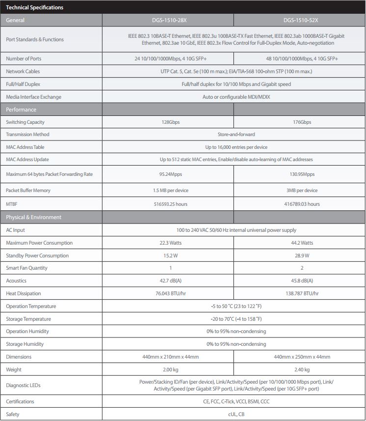 28-Port Gigabit Stackable Smart Managed Switch including 4 10G SFP (DGS-1510-28X)