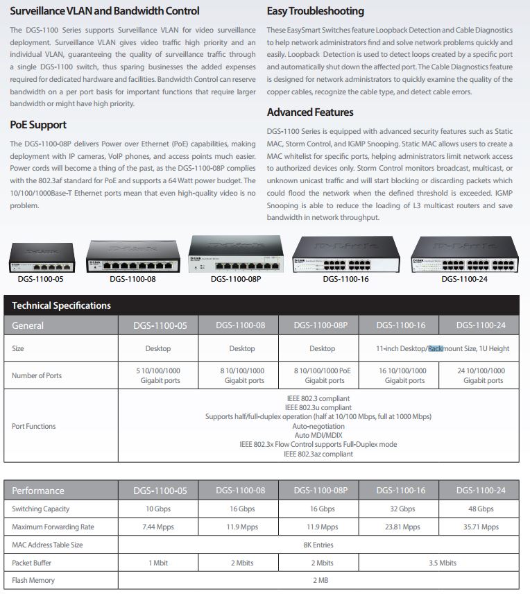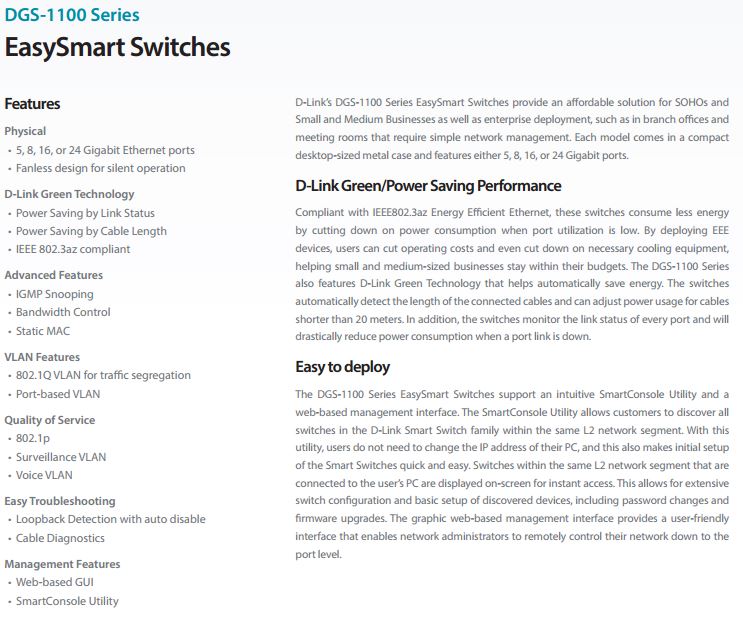 Product Name D-Link DGS-1100-08 8-Port Gigabit EasySmart Switch