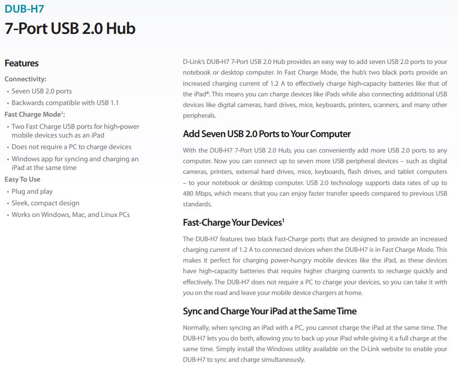 Product Name D-link Dub-h7 7port Usb 2.0 Hub