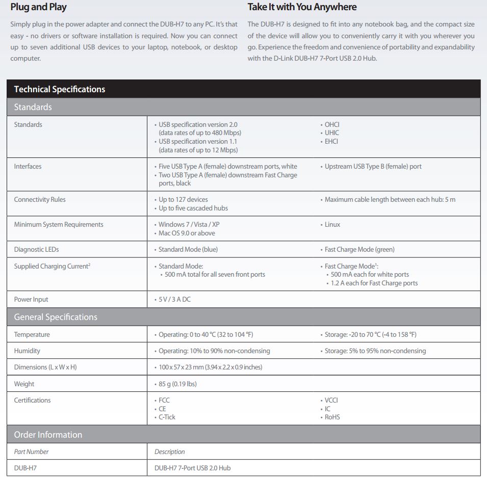 Description D-link Dub-h7 7port Usb 2.0 Hub