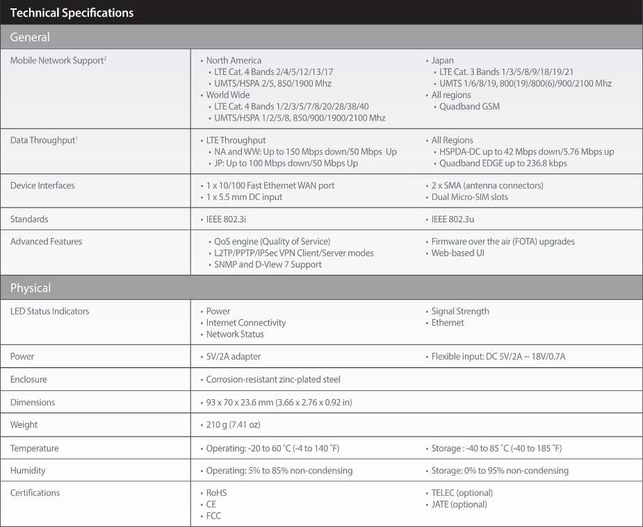 Product Name | D-Link DWM-312 4G LTE Dual SIM M2M VPN Router |