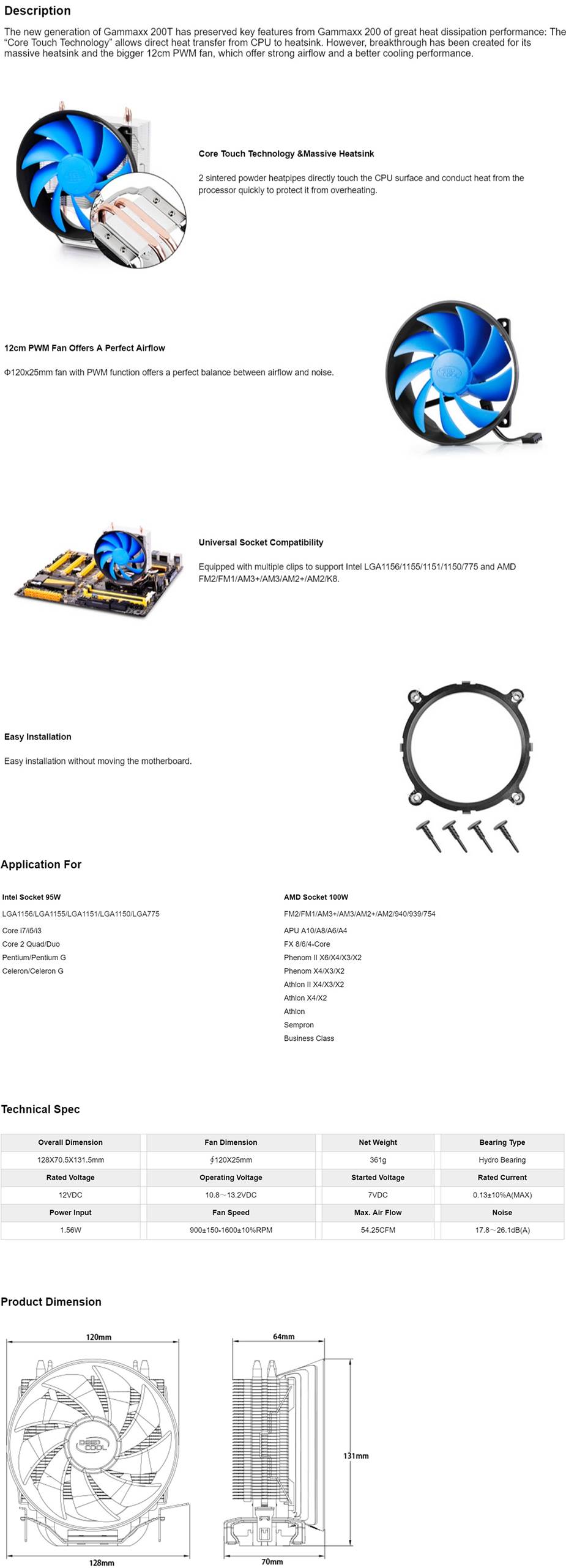 Product Name | Deepcool GAMMAXX 200T CPU Cooler |