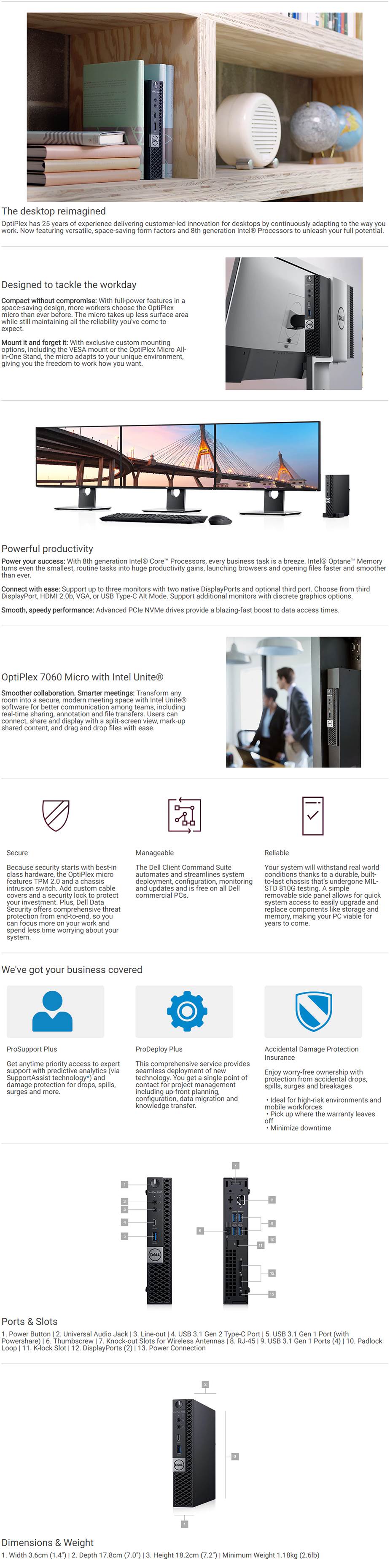 Product Name | Dell OptiPlex 7070 MFF Desktop PC i7-9700T 16GB 256GB SSD WLAN Win10 Pro N012O7070MFFAU |