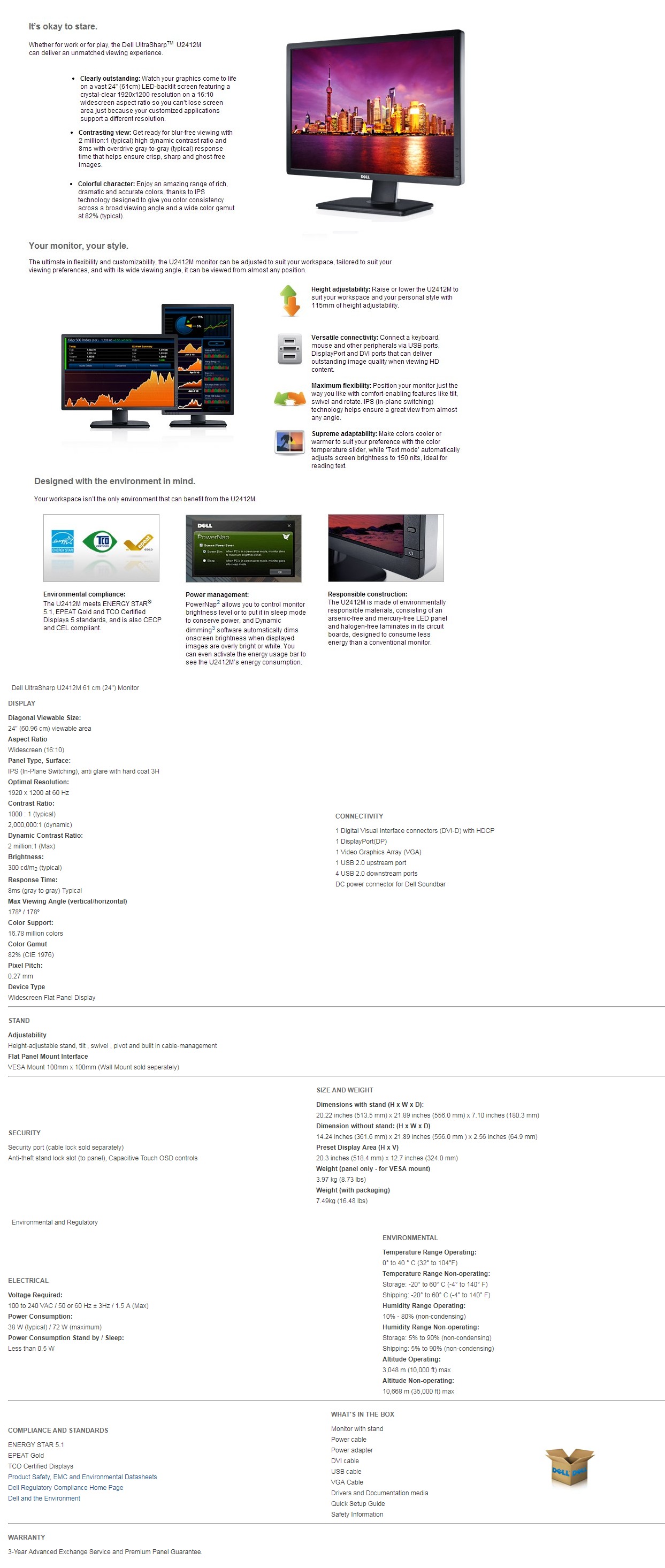 Product Name | Dell U2412M UltraSharp 24" Full HD IPS LED Monitor with USB |