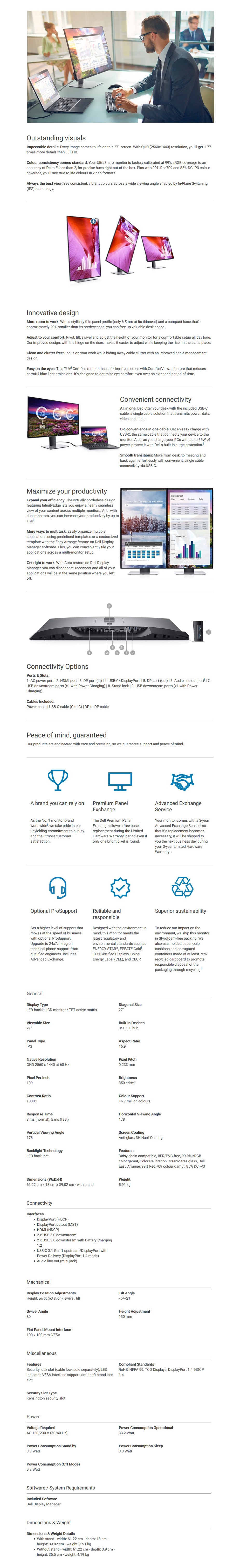 Product Name | Dell UltraSharp U2719DC 27" QHD InfinityEdge USB-C IPS Monitor |