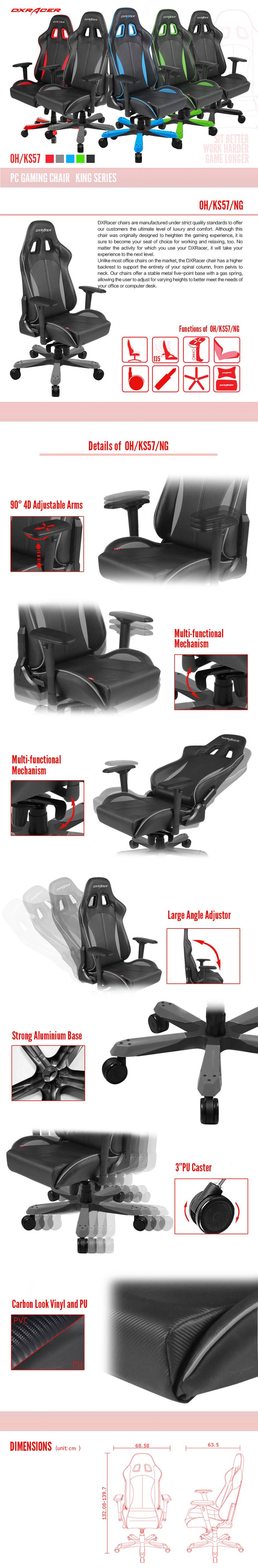 Product Name | DXRacer King Series KS57 Gaming/Office Chair - Black & Carbon Grey |