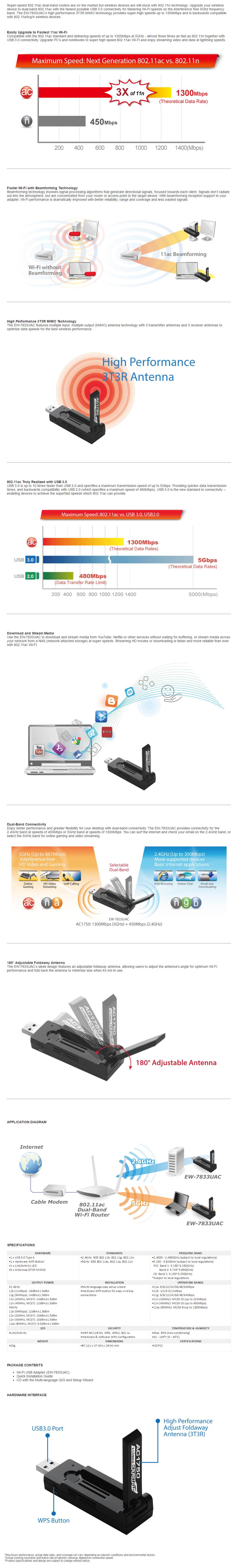 Product Name | Edimax AC1750 Dual-Band Wi-Fi USB3.0 Adapter with Adjustable Antenna EW-7833UAC |