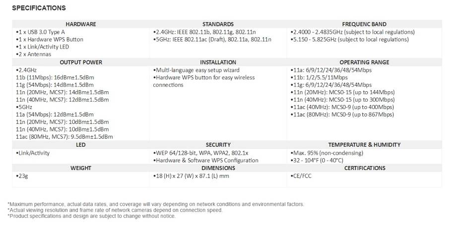 The next generation 802.11ac wireless standard is set to revolutionize Wi-Fi. Super-speed 802.11ac dual-band routers are already available but wireless devices are still stuck with 802.11n technology. Upgrade your wireless device to dual-band 802.11ac with the fastest possible USB 3.0 connectivity for blistering Wi-Fi speeds on the interference free 5Ghz frequency band.