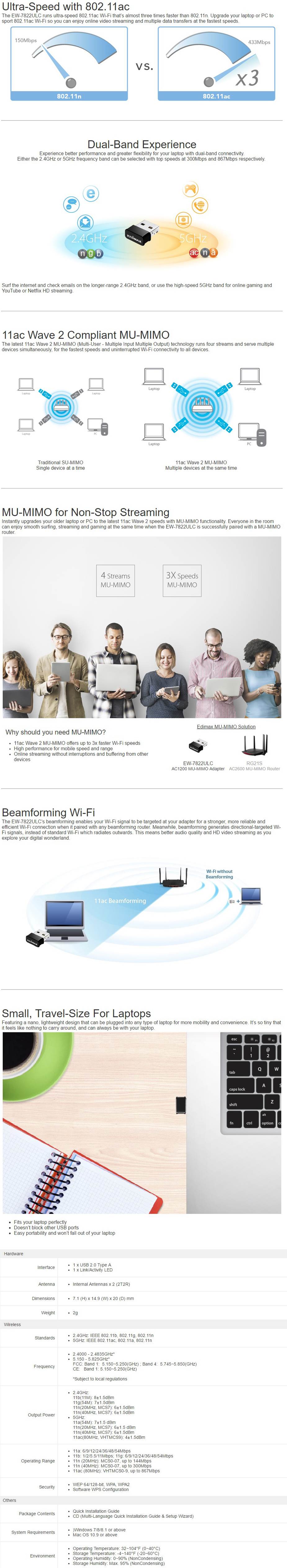 Product Name | Edimax EW-7822ULC AC1200 Dual-Band MU-MIMO USB Wi-Fi Adapter |