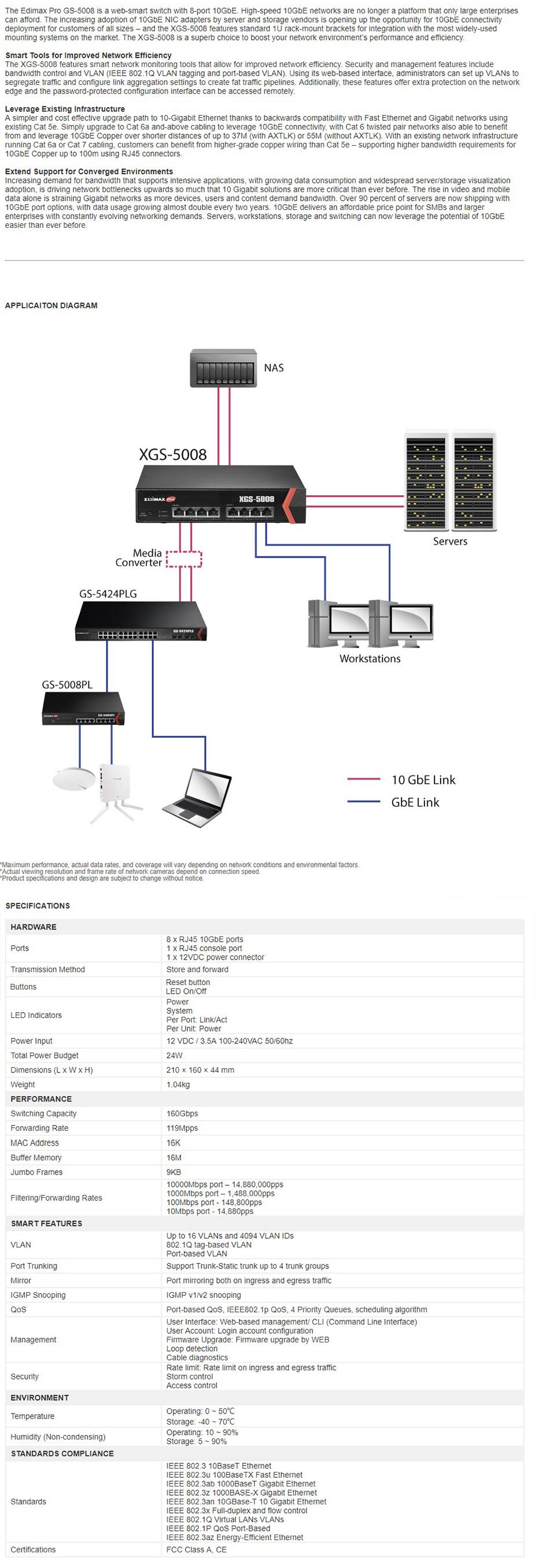 Product Name Edimax Pro XGS-5008 8-Port 10GbE Web Smart Switch