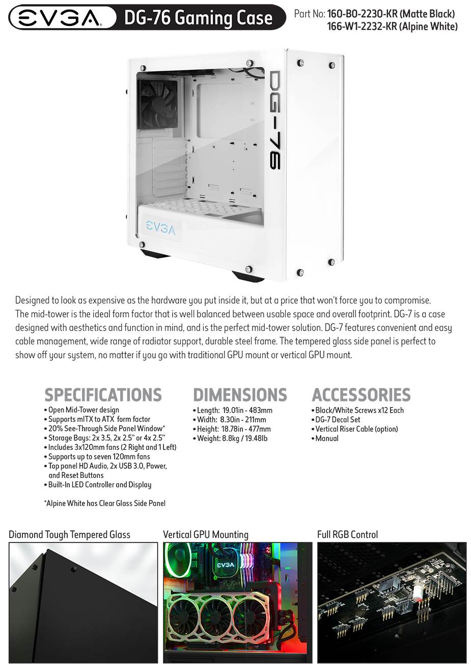 Product Name | EVGA DG-76 Mid-Tower ATX Tempered Glass Case - Alpine White |