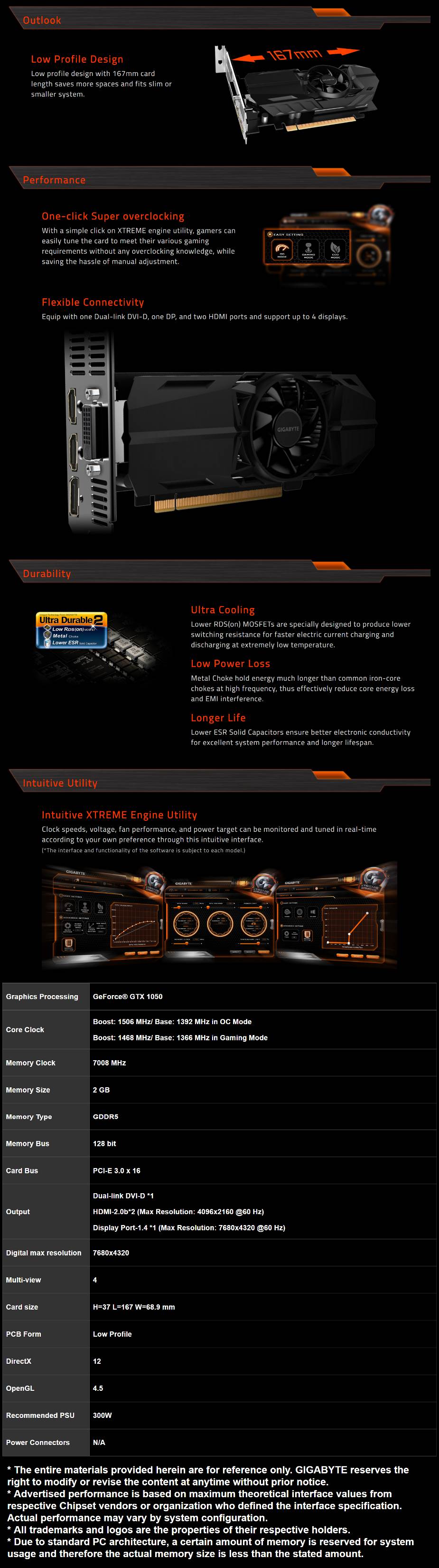 Product Name | Gigabyte GeForce GTX 1050 OC 2GB Low Profile Video Card |