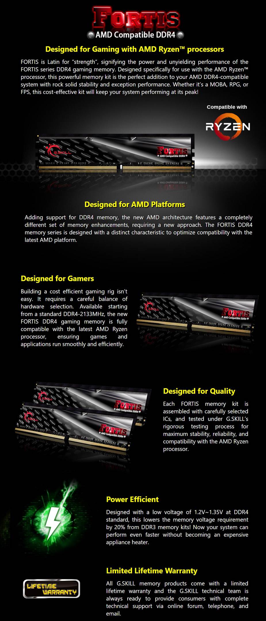 G.skill Gs-f4-2133c15d-16gft Ddr4-2133 16gb Dual Channel Fortis [f4-2133c15d-16gft]
