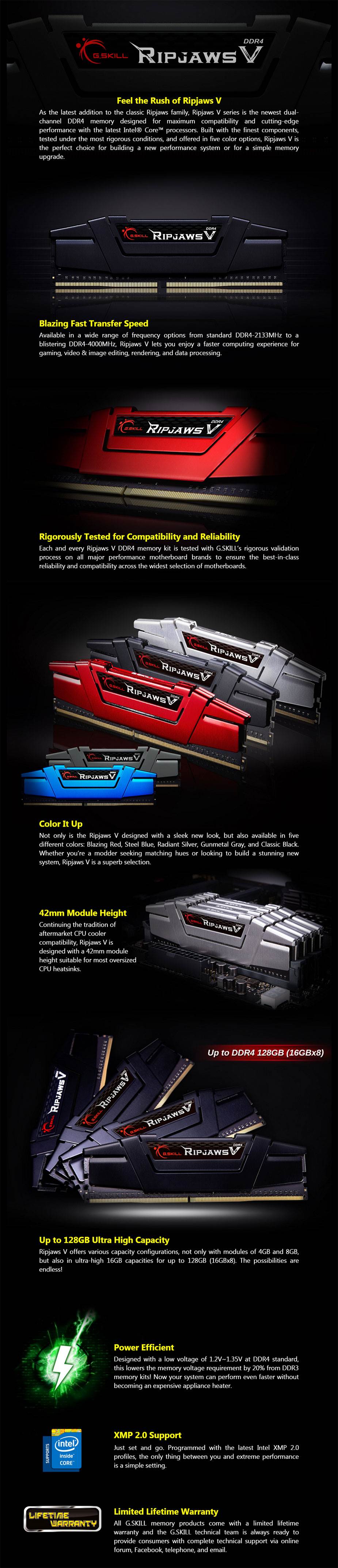 Product Name | G.Skill Ripjaws V 16GB (2x 8GB) DDR4 2133MHz Memory Red F4-2133C15D-16GVR |