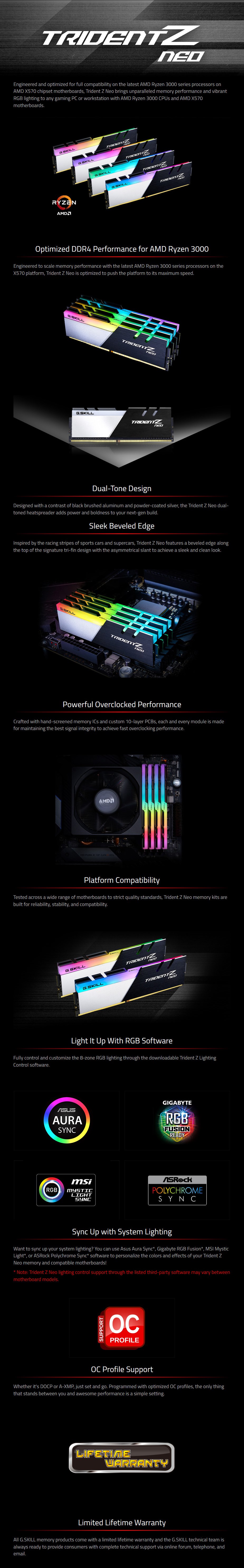 Product Name | G.Skill Trident Z Neo RGB 32GB (2x 16GB) DDR4 3200MHz Memory F4-3200C16D-32GTZN |