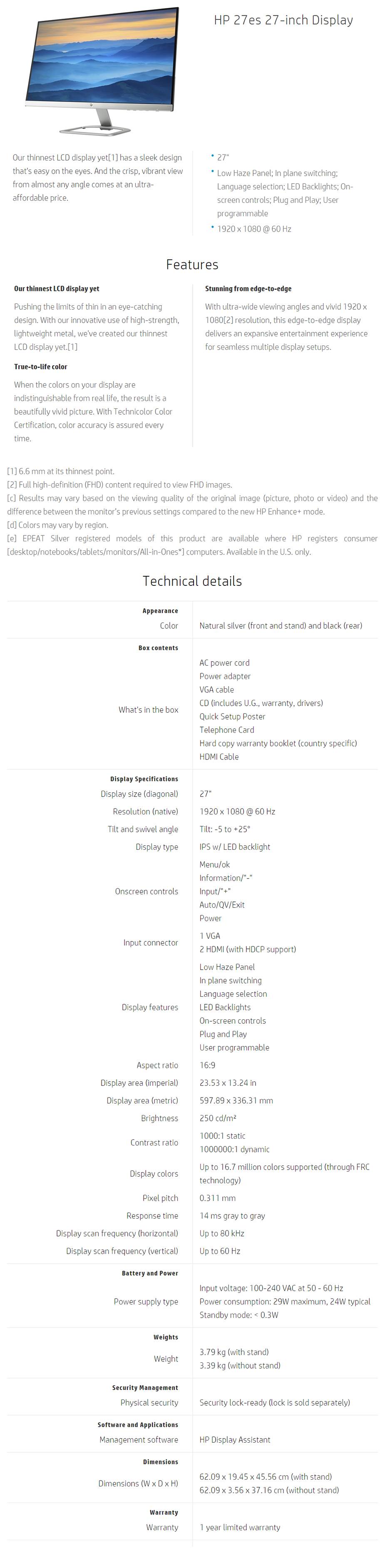 Product Name HP 27es 27" FHD IPS LED Monitor