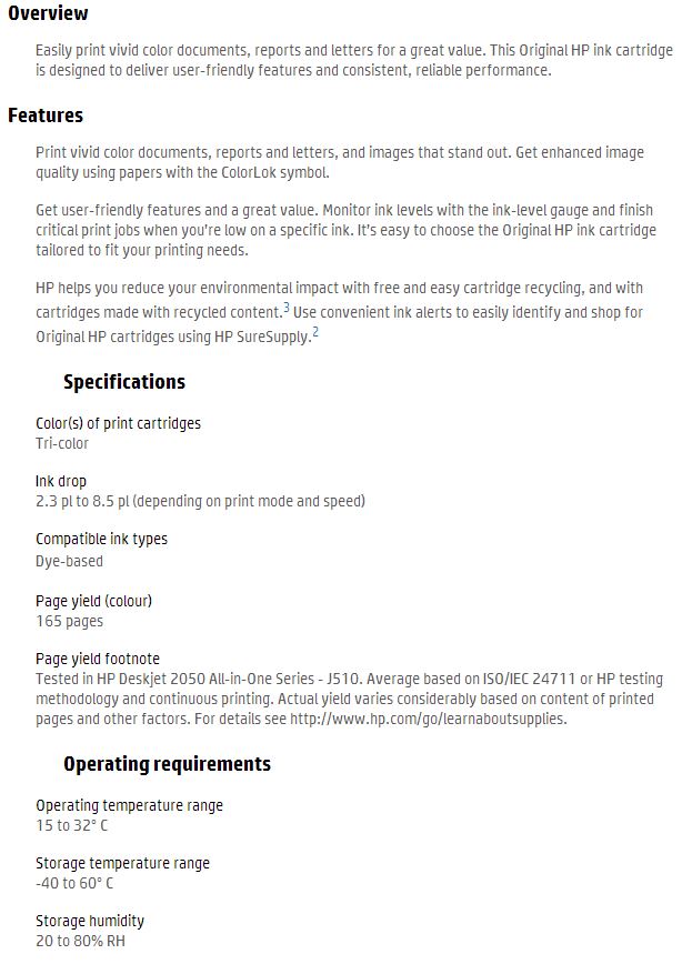 Product Name | HP 61 Tri-Color Inkjet Print Cartridge, 165 pages (CH562WA) |