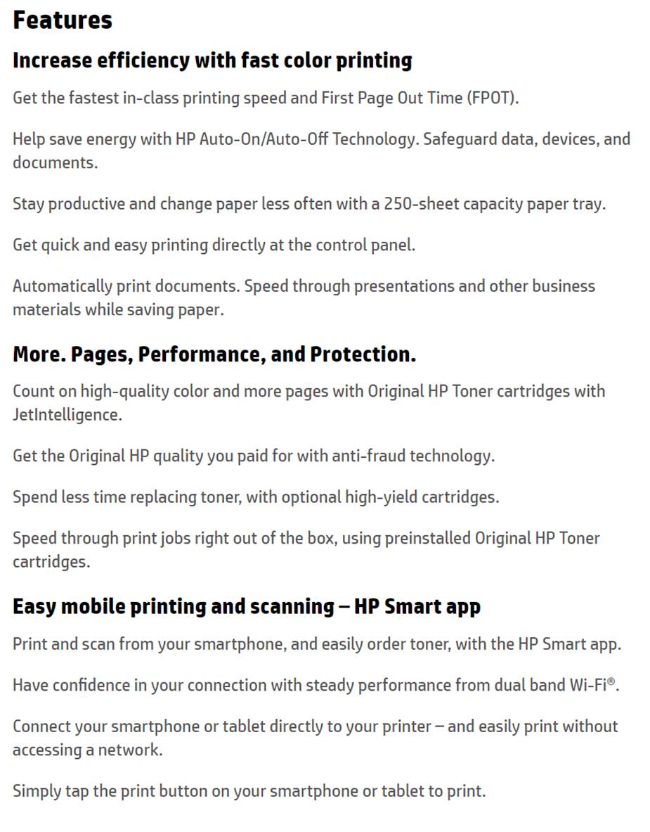 Product Name | HP Color LaserJet Pro M254nw A4 Colour Wireless Laser Printer |