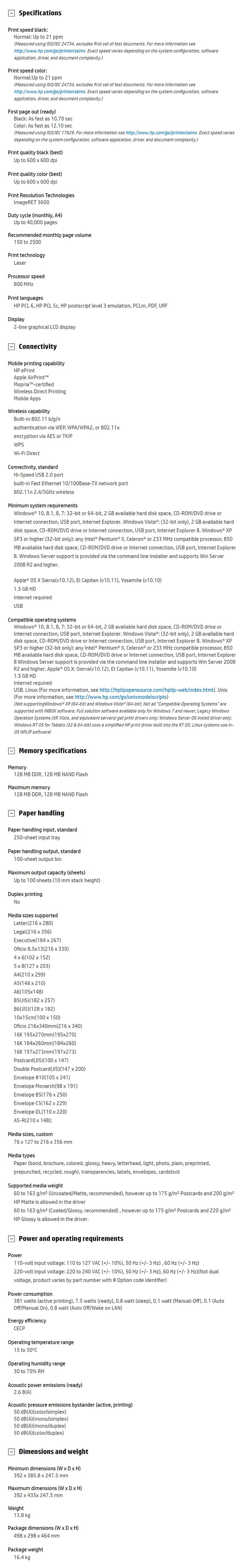 HP Color LaserJet Pro M254nw (T6B59A),Print Only,Up to 21 ppm,800 MHz,128 MB DDR,Up to 600 x 600 dpi,16.4kg