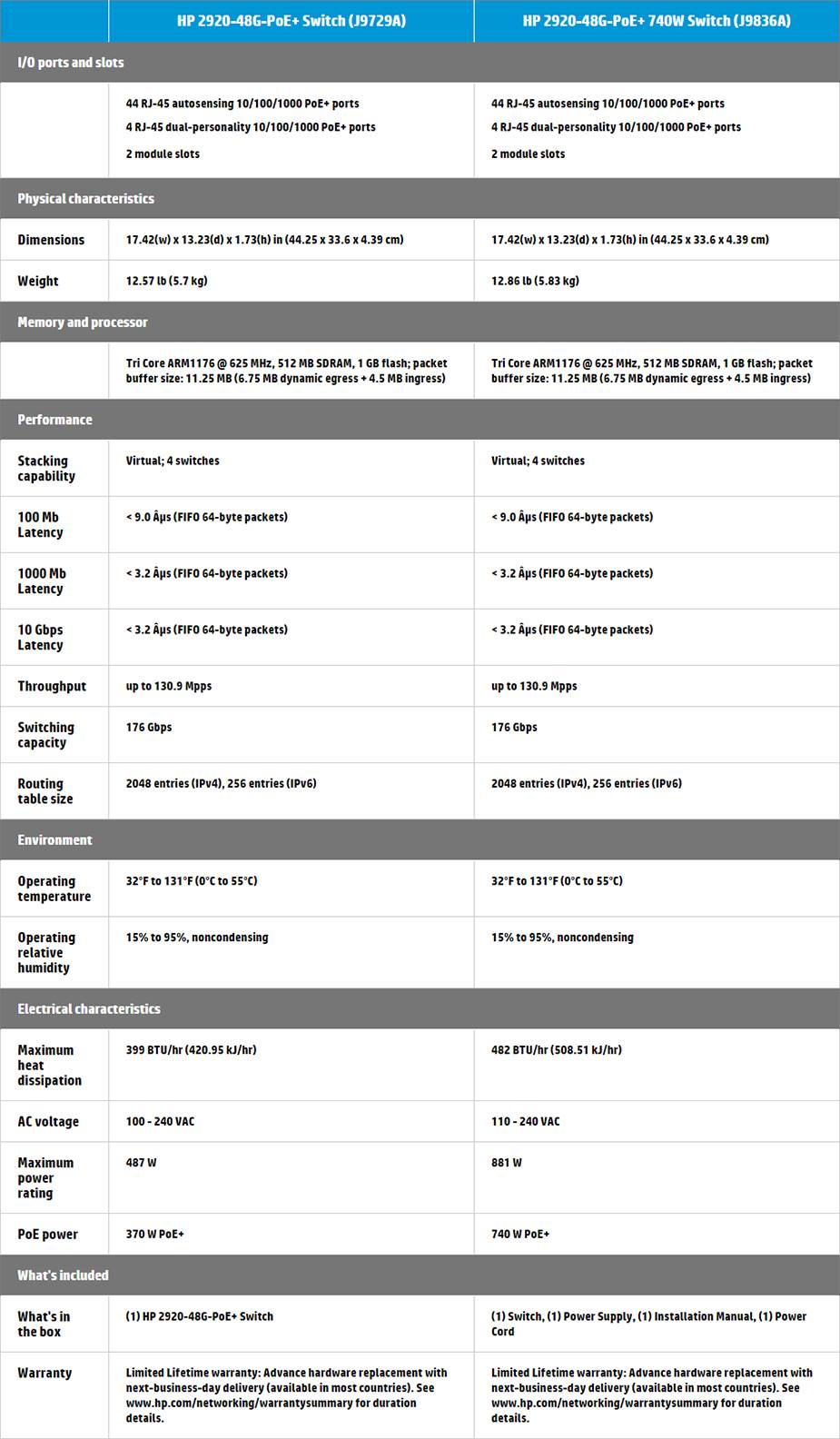 - With up to 740W of internal PoE+ power, the 2920 Switch Series can easily scale to 1440 Watts with a simple connection to an external power supply (EPS) or redundant power supply (RPS).
